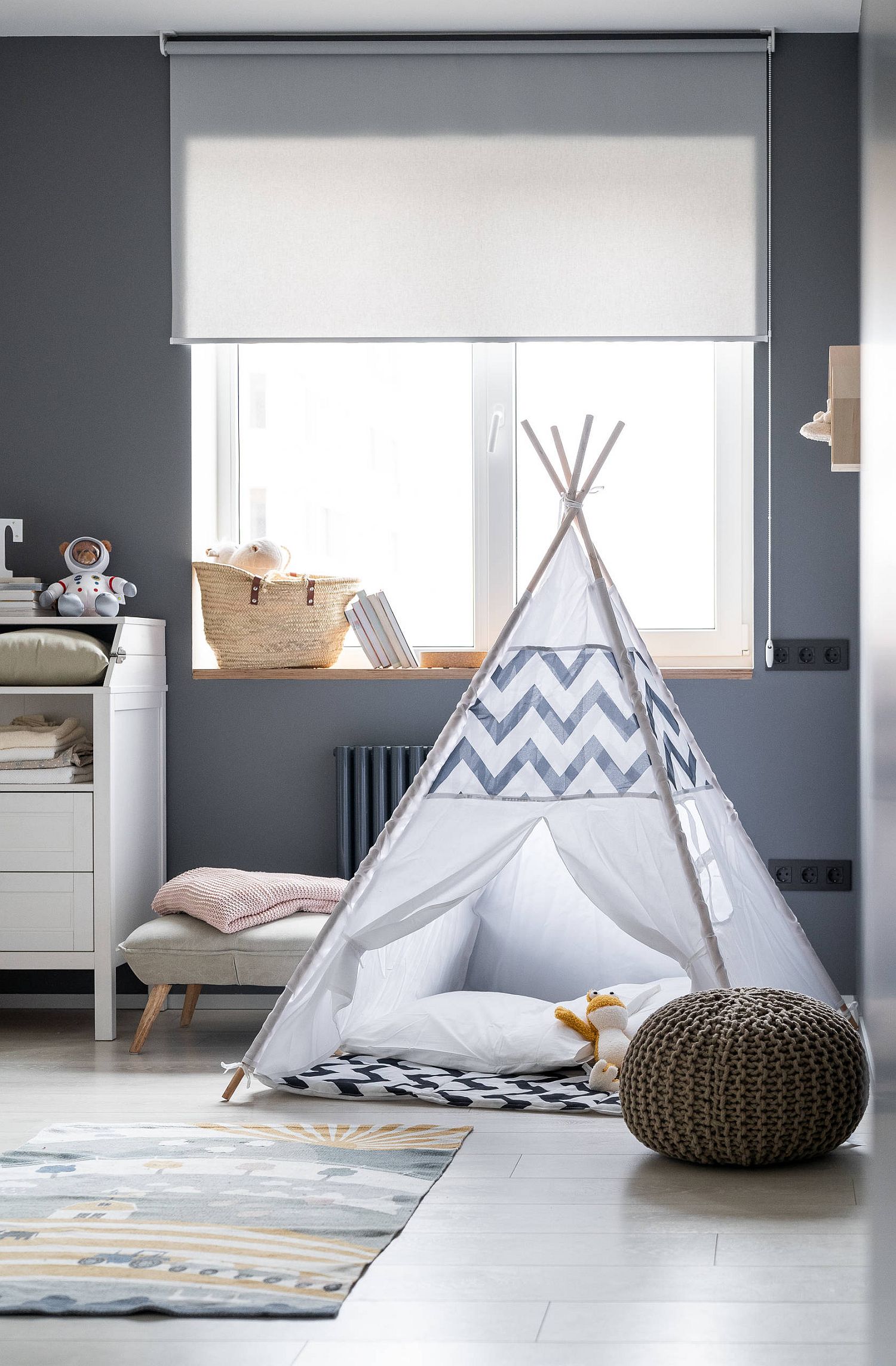 Một chiếc lều nhỏ, đệm sàn và một tấm thảm sang trọng có thể biến bất kỳ nơi nào thành phòng chơi của trẻ em.